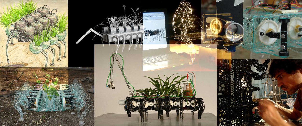 The "Plantas Nómadas" are a good example of the scientific approaches seen in Environment Art. The Mexican artist Gilberto Esparza designed self-sustaining robots that "feed" off dirty water. With respect to “Plantas Nómadas” it is conceivable that industrially contaminated areas can be cleaned from these or similar creatures.